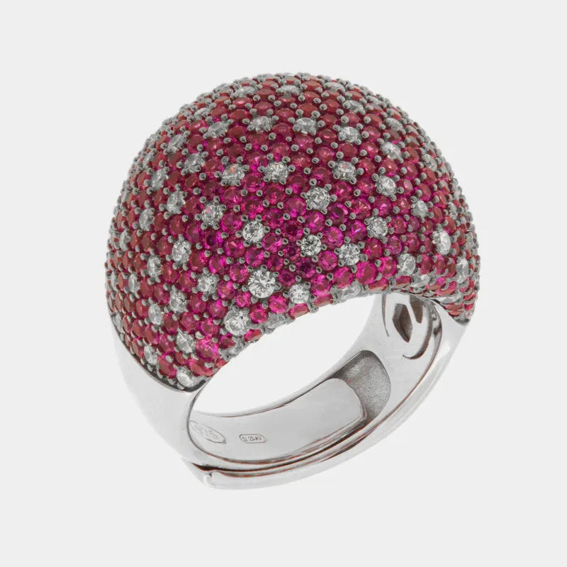 Anello in Argento 925 bombato con pave' rossi