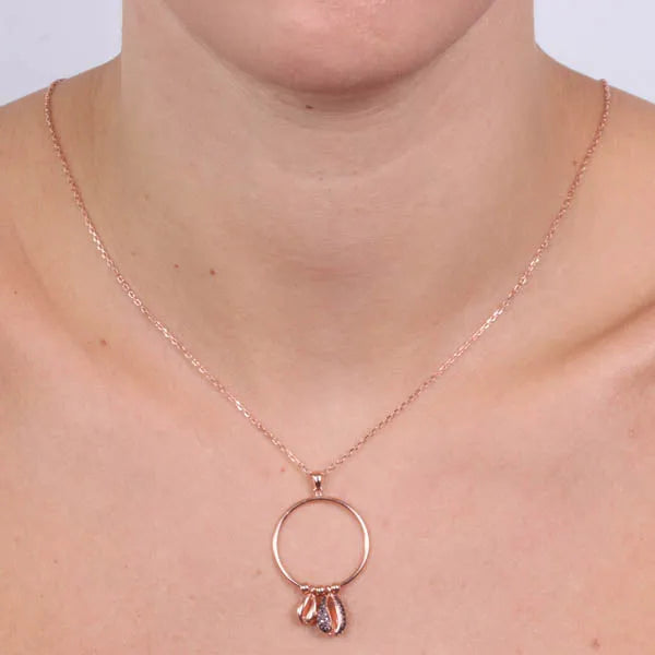 Collana in Argento 925 ,pendente cerchio e conchiglie a zirconi neri