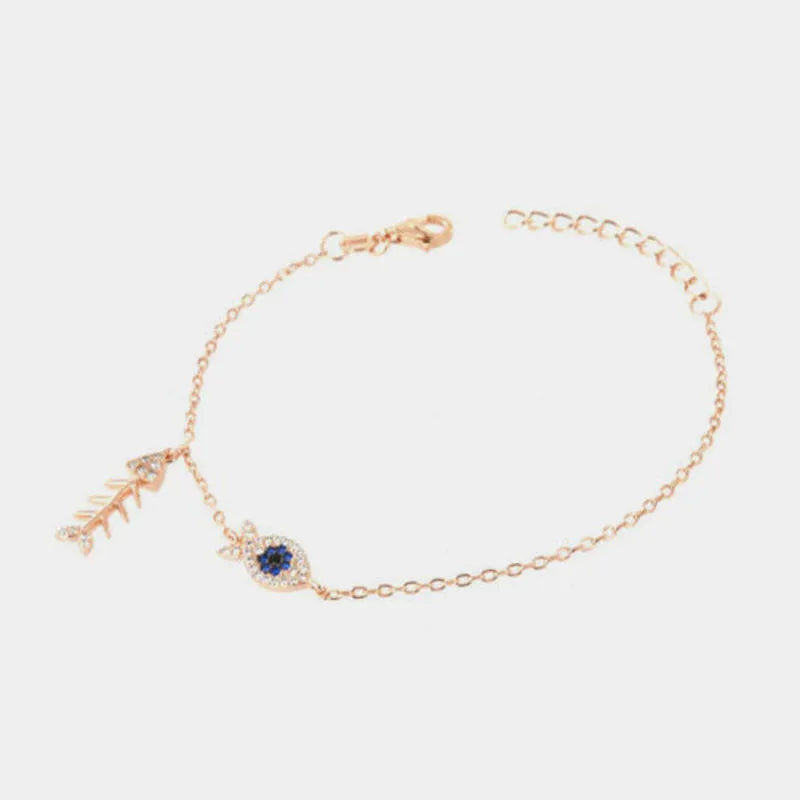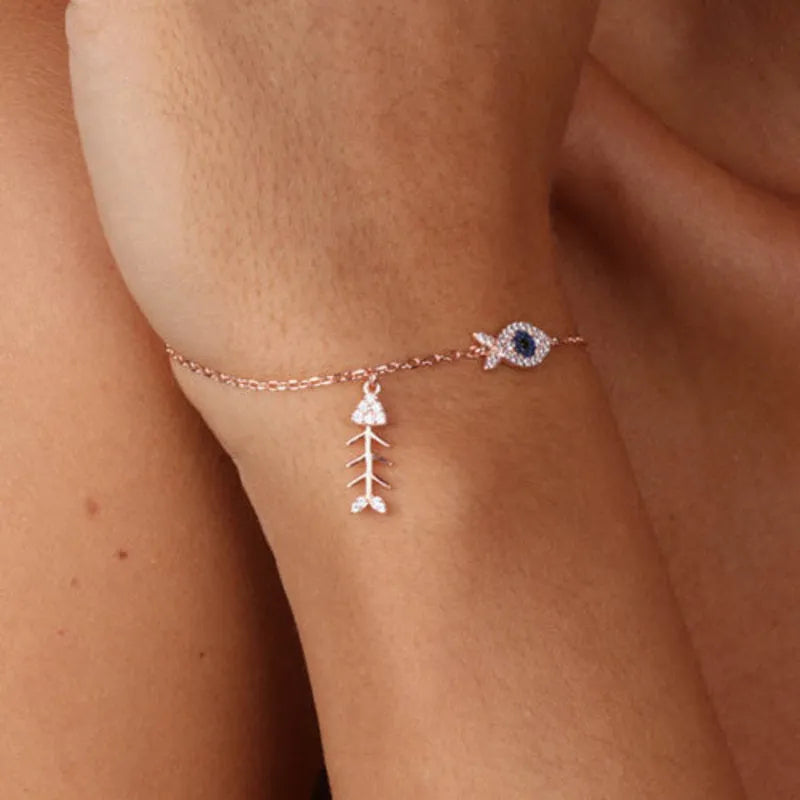 Bracciale in Argento 925 con pesciolino e lisca pendente, a zirconi bianchi e colorati
