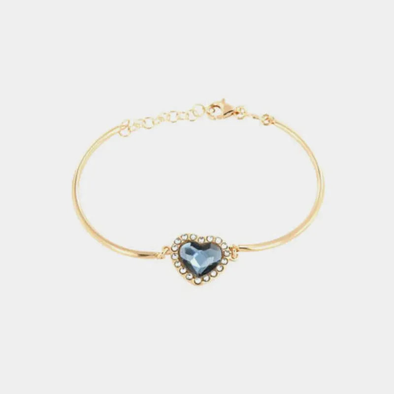 Bracciale in Argento 925 semi-rigido con cristallo forma cuore blu denim e giro di cristalli bianchi