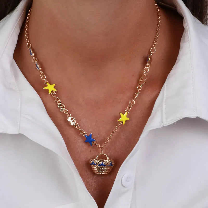 Collana in Metallo con coffa impreziosita da stelle blu e gialle