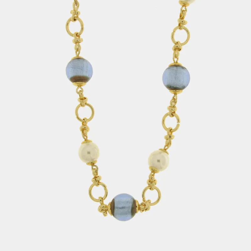 Collana in Metallo con cristalli blu ispirati al vetro di Murano