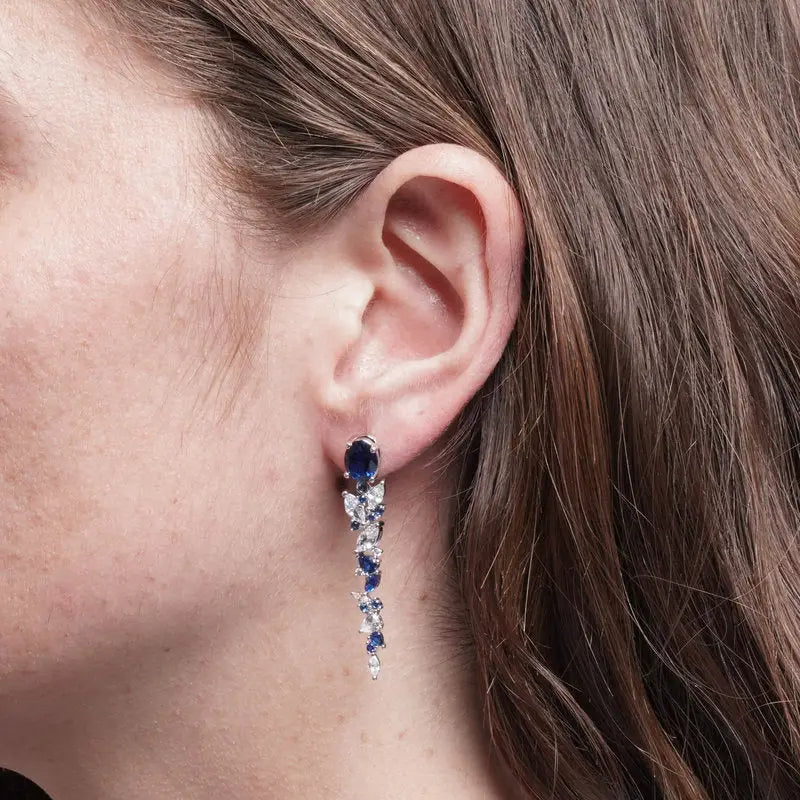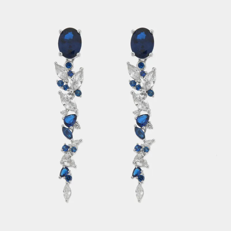 Orecchini in Metallo zirconi pendenti blu