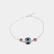Bracciale in Argento 925 con cristallo dalla colorazione blu denim centrale e doppio punto luce rosa antico ai lati