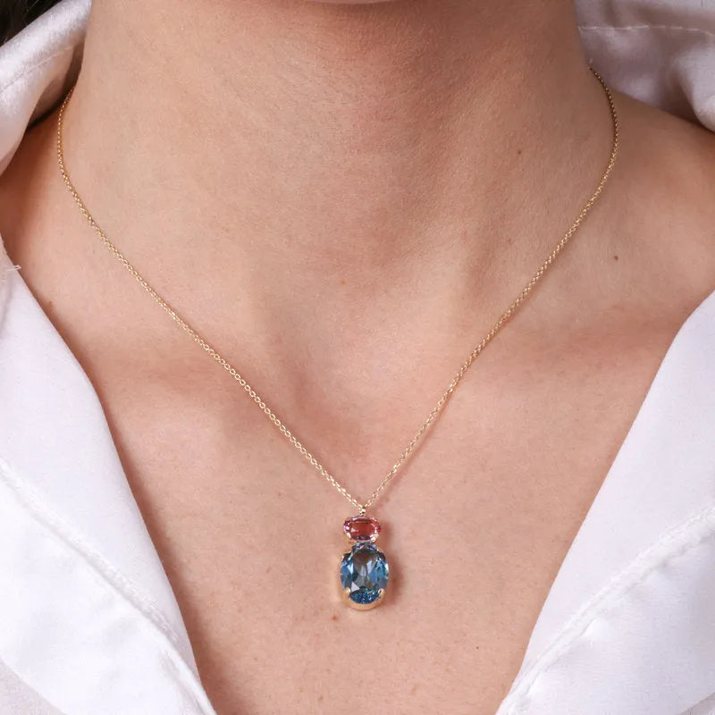 Collana in Argento 925 con cristalli azzurri e rosa