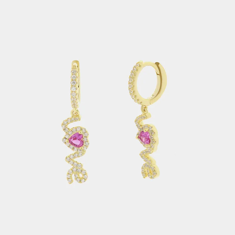 Orecchini in Argento 925 a cerchio con scritta LOVE e cuore rosa