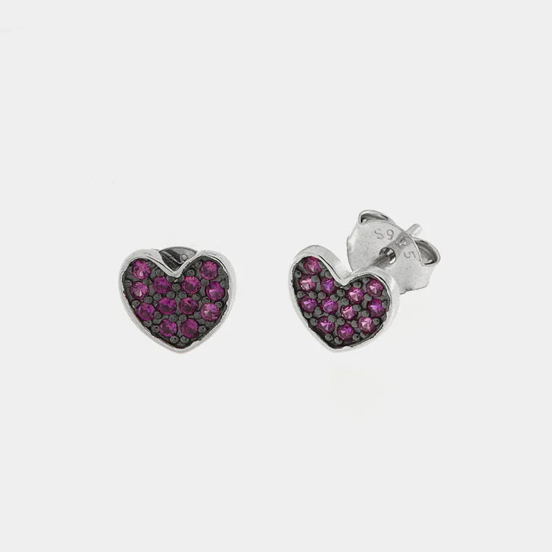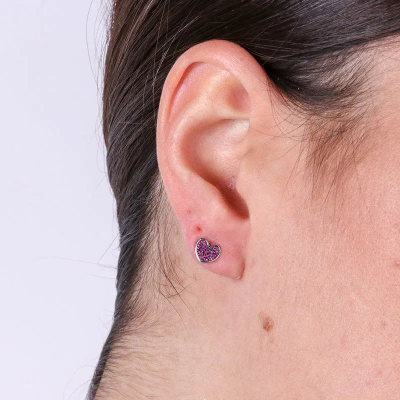 Orecchini in Argento 925 a forma di cuore impreziositi da zirconi fucsia