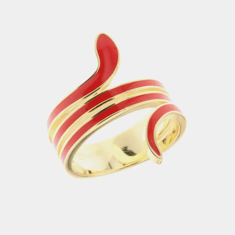 Anello in Argento 925 a forma di serpente smaltato rosso