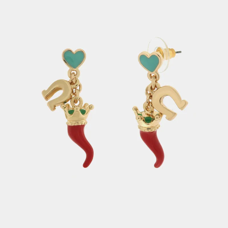 Orecchini in Metallo con corno rosso e ferro di cavallo