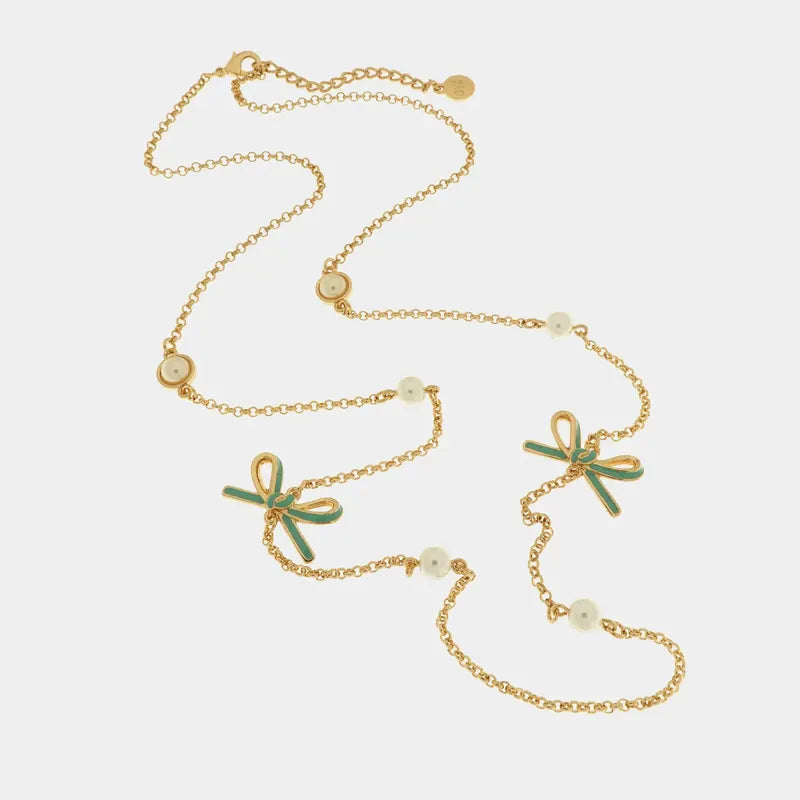 Collana in Metallo con perle e fiocco centrale