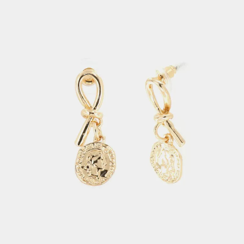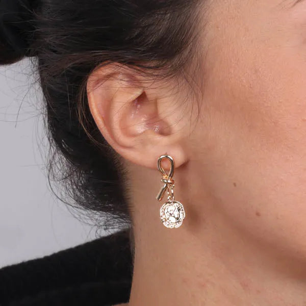 Orecchini in Metallo con motivo intreccio e moneta pendente