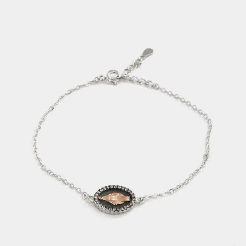 Bracciale in Argento 925 con amuleto religioso su rutenio e giro di zirconi bianchi