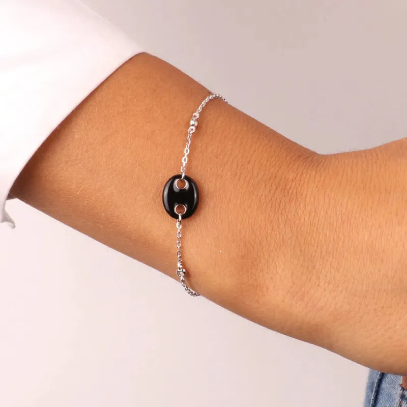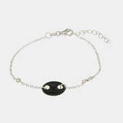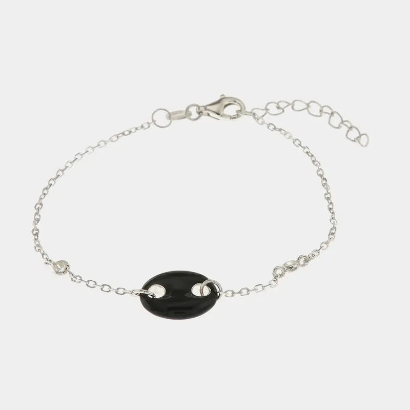 Bracciale in Argento 925 maglia a catena con dettaglio in cristalli e maglia marina smaltata nera
