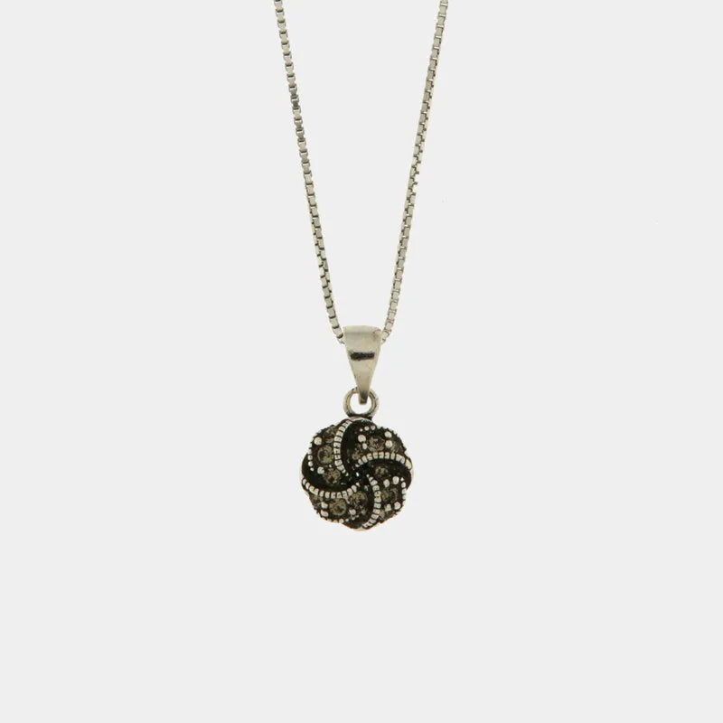 Collana in Argento 925 con pendente a forma di nodo  con cristalli bainchi e fume'