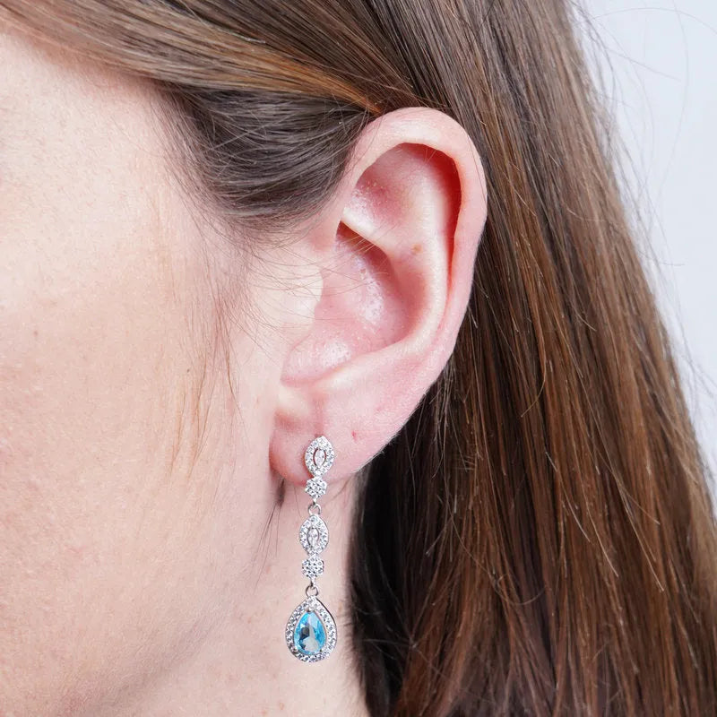 Orecchini in Argento 925 goccia azzurra con zirconi