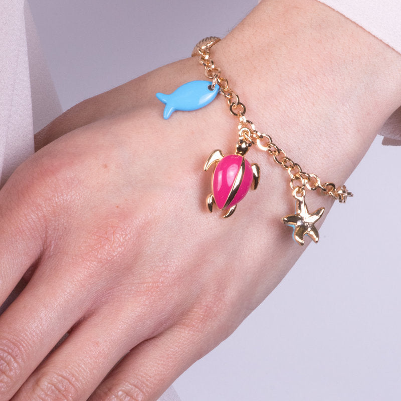 Bracciale in Metallo con tartaruga rosa, pesce e stella marina