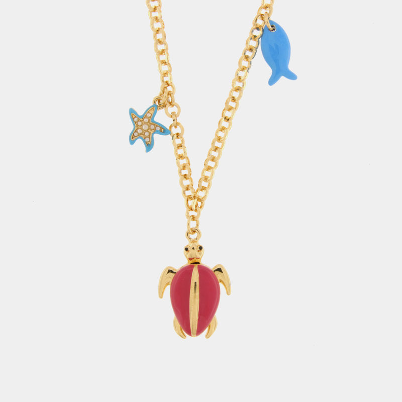 Collana in Metallo con tartaruga rossa, pesce e stella marina