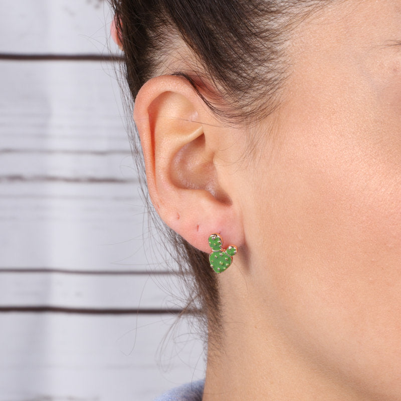 Orecchini in Metallo a lobo, con fichi d'india impreziositi da smalto verde