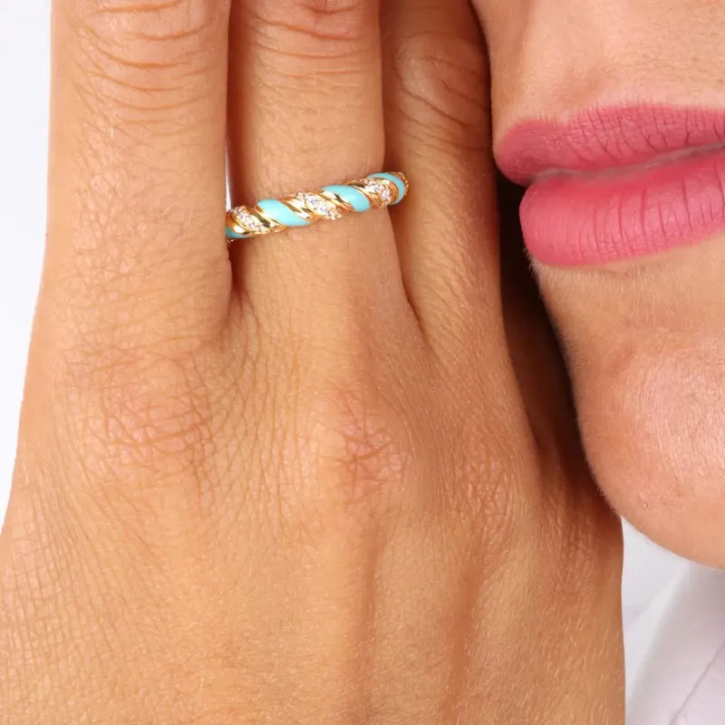 Anello in Argento 925 con intrecci impreziositi da zirconi bianchi e smalti colorati
