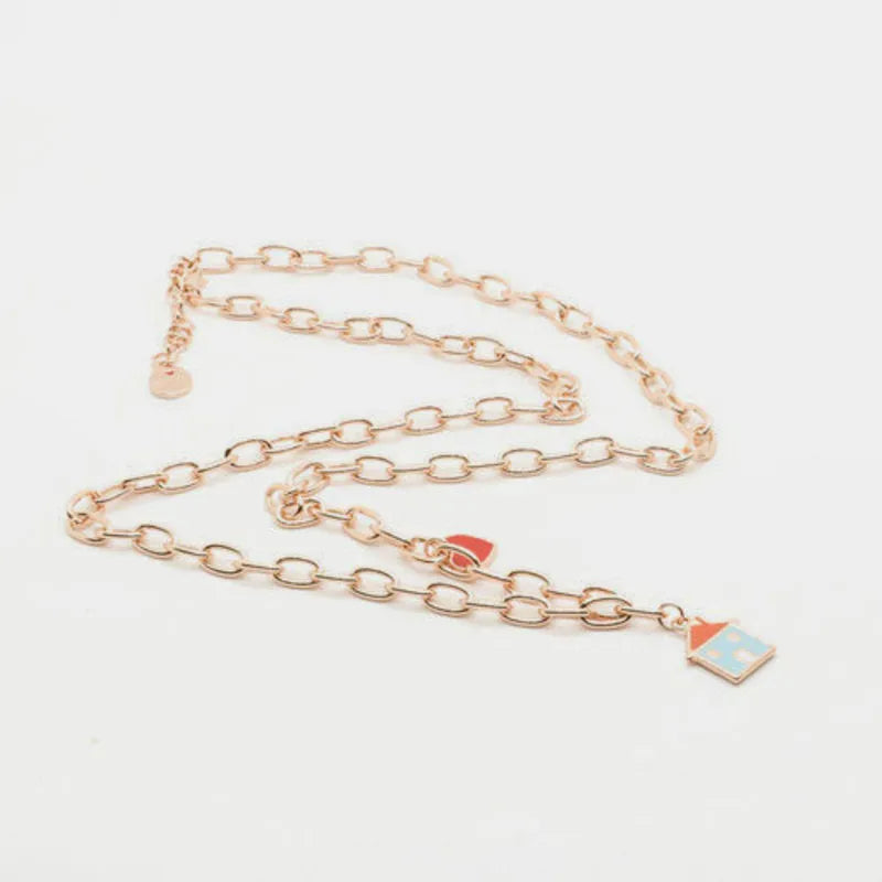 Collana in Metallo a catena lunga, con ciondolo casa pendente impreziosito da smalti colorati