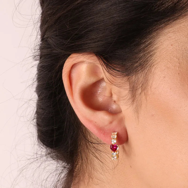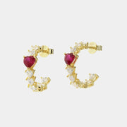Orecchini in Argento 925 a cerchio tempestati da zirconi a cuori