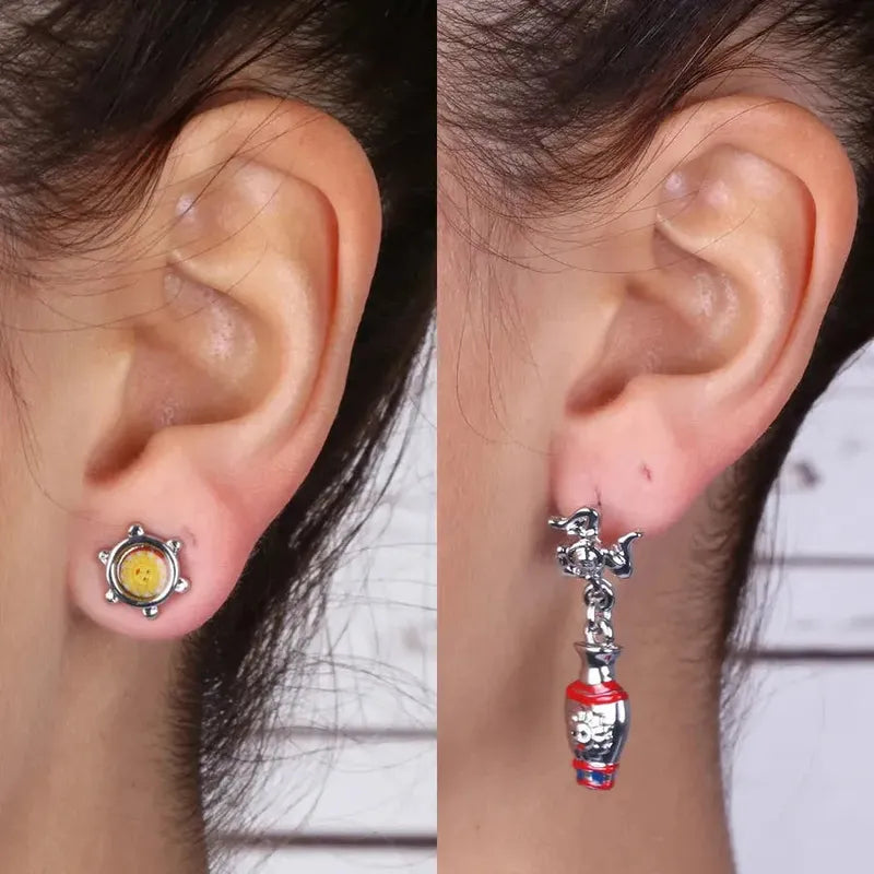 Orecchini in Metallo con anfora pendente da trinacria siciliana e bottone a lobo con sole