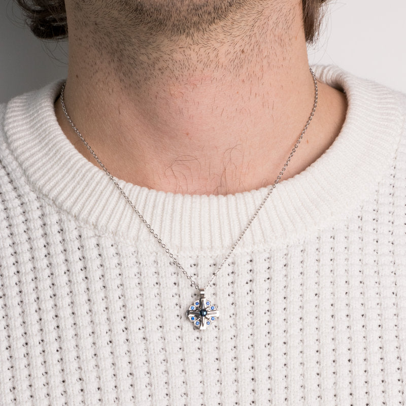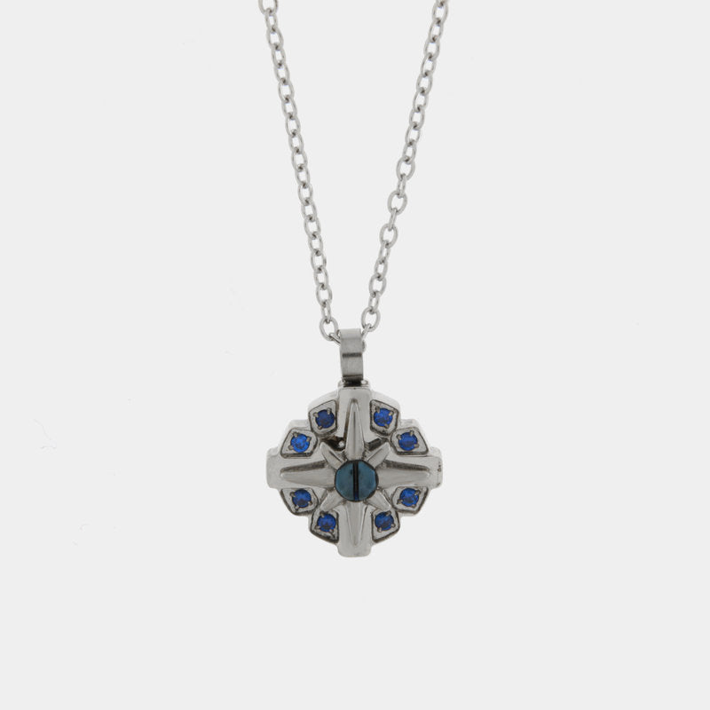 Collana in Acciaio con pendente tondo con dettagli blu