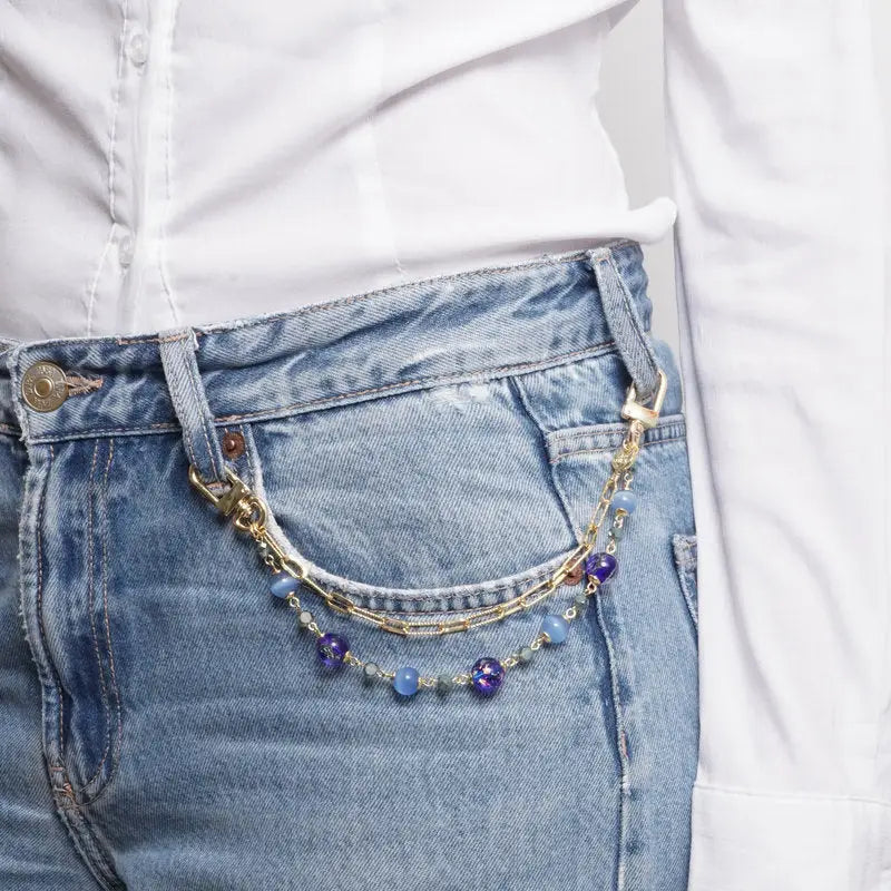 Accessorio borsa in Metallo doppia catena con cristalli blu