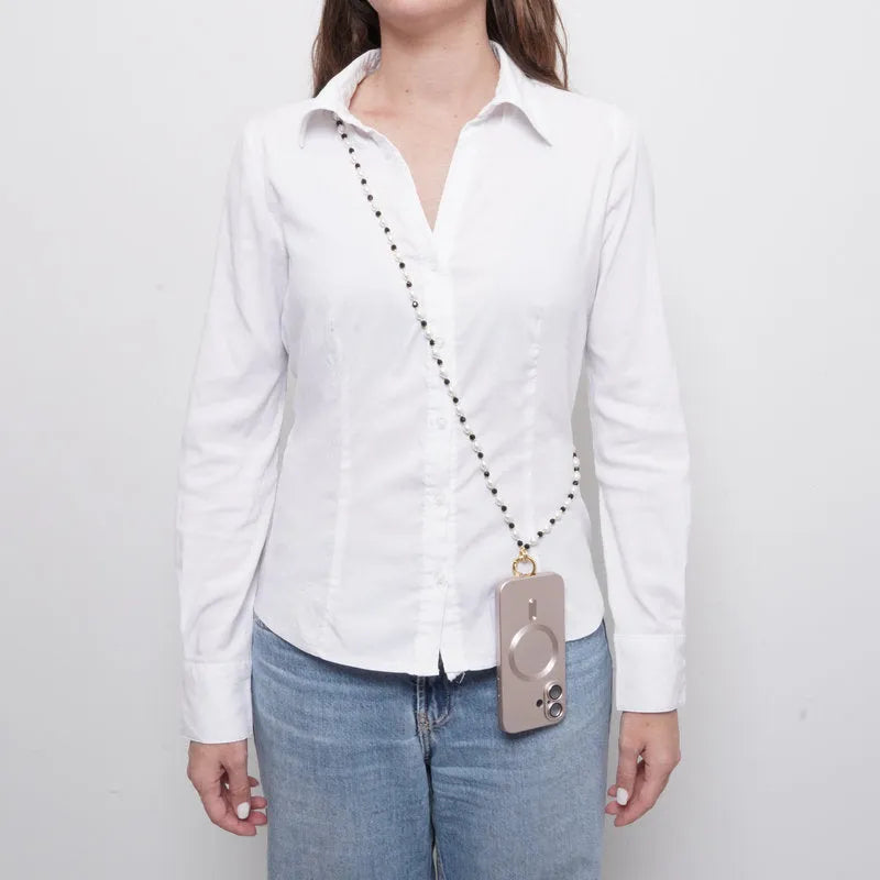 Catena per Cellulare perle bianche e nere