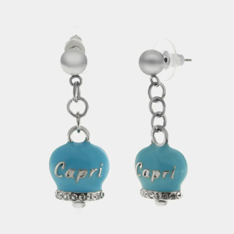 Orecchini in Acciaio con campanella  azzurro con scritta Capri