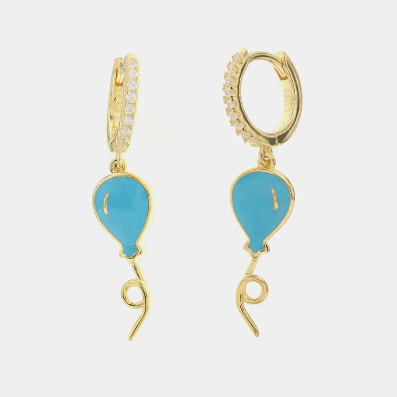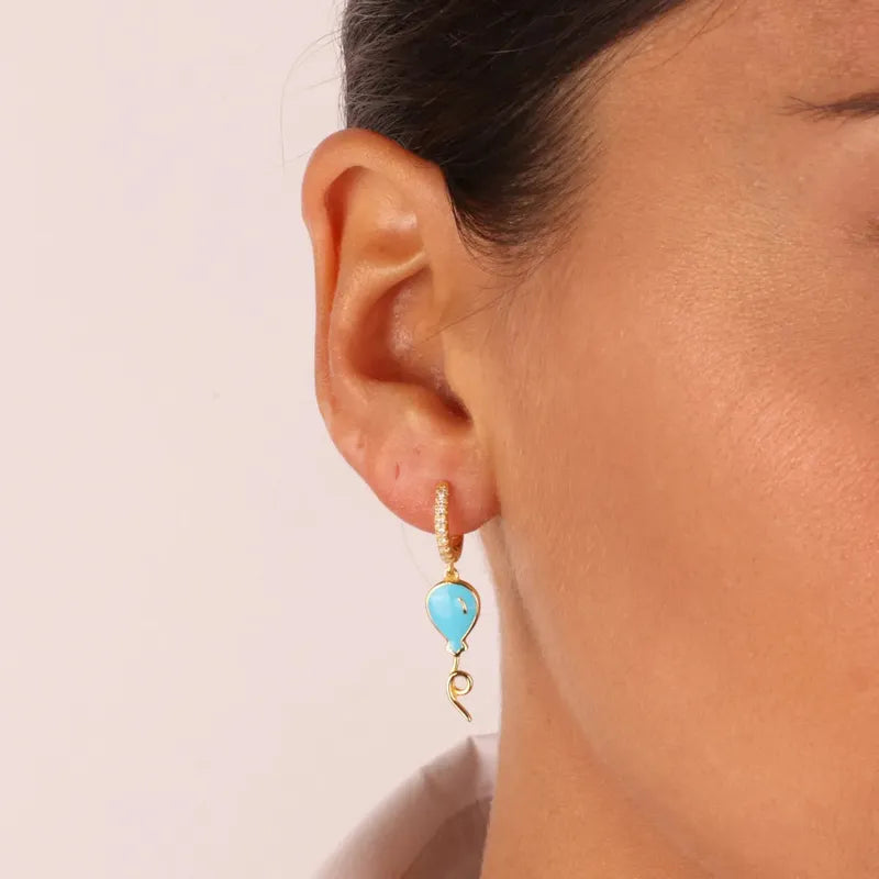 Orecchini in Argento 925 con chiusura a scatto tempestata da zirconi bianchi e palloncino con smalto turchese