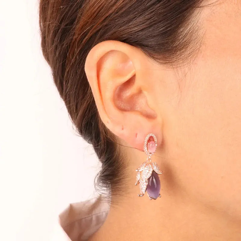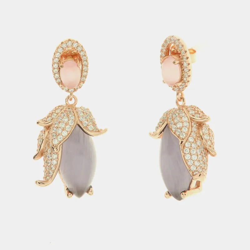 Orecchini in Argento 925 con pendente a forma di fiore impreziosita da pietra effetto occhio di gatto