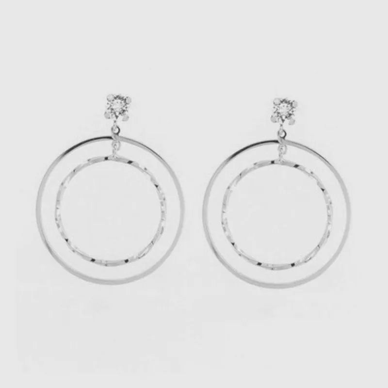 Orecchini in Argento 925 con pendenti a cerchio realizzati con lavorazione martellata e cristalli