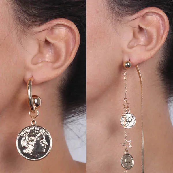 Orecchini in Metallo lunghi con stelle e monete pendenti