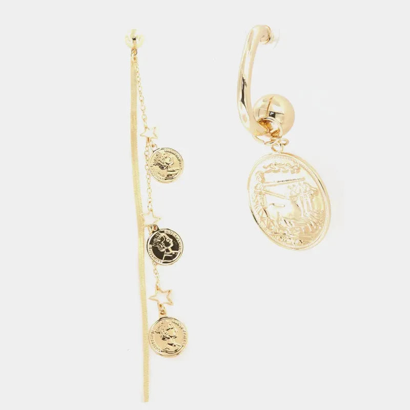 Orecchini in Metallo  lunghi con stelle e monete pendenti