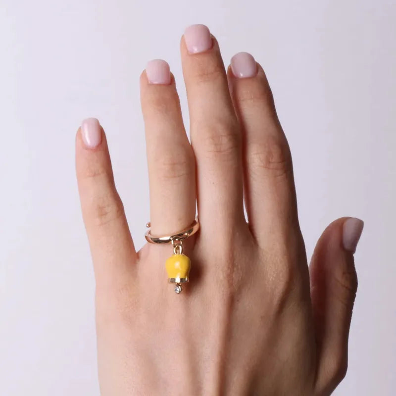 Anello in Metallo con campanella portafortuna pendente, impreziosita da smalto e punto luce