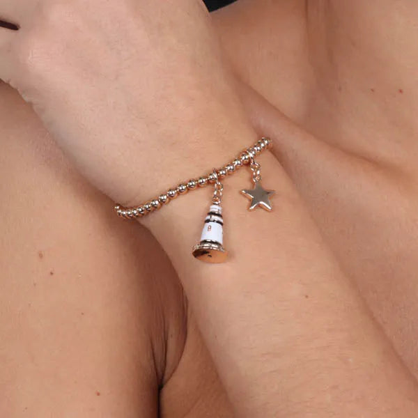 Bracciale in Metallo con ciondolo faro pendente, impreziosito da smalti colorati