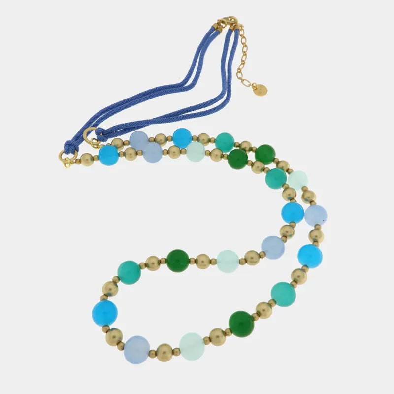 Collana in Metallo con cristalli azzurri ispirati al vetro di Murano