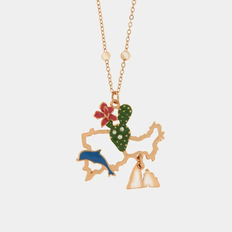 Collana in Metallo con pendente a forma di Campania con cactus, delfino e faraglioni