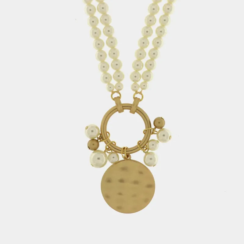 Collana in Metallo multifilo con perle e moneta satinata