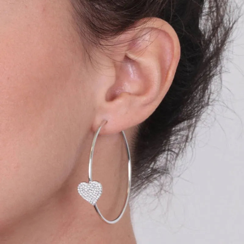 Orecchini in Argento 925 Cerchi con cuore di zirconi bianchi