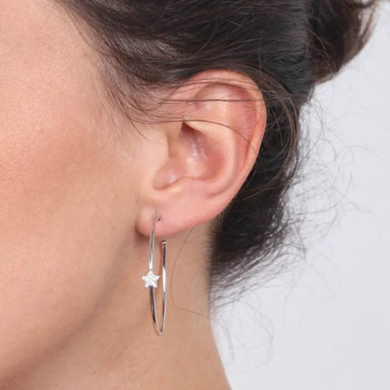 Orecchini in Argento 925 cerchi con scritta HAPPY interna, impreziosita da zirconi luminosi