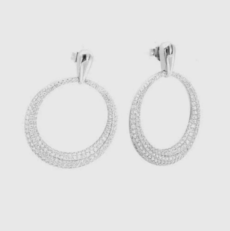 Orecchini in Argento 925 cerchi pendenti con zirconi bianchi