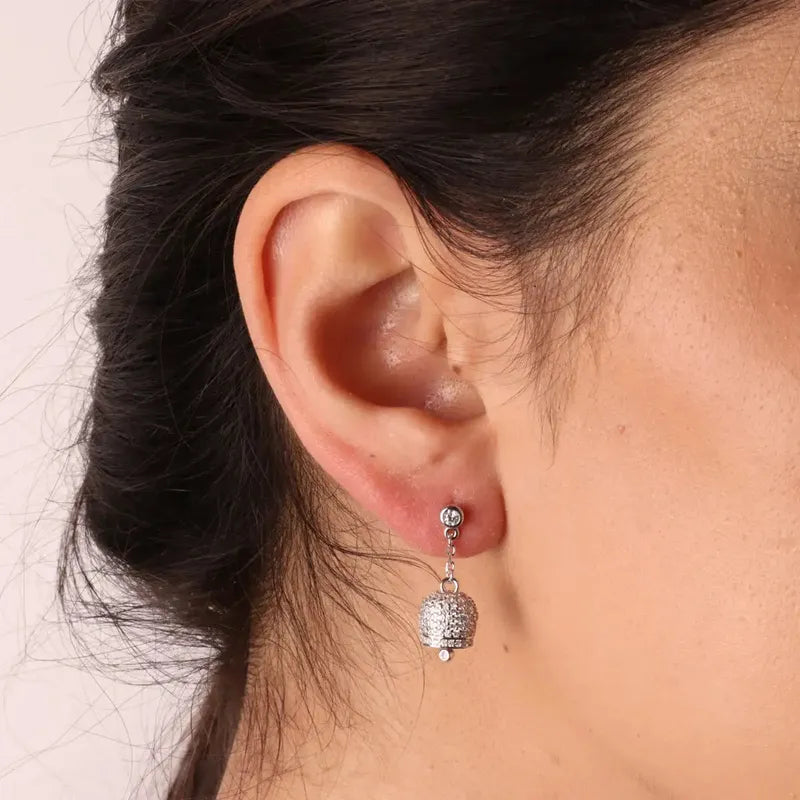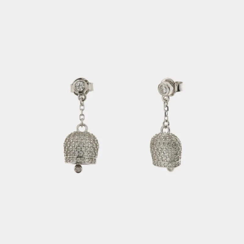 Orecchini in Argento 925 con campanella portafortuna tempestata da zirconi bianchi