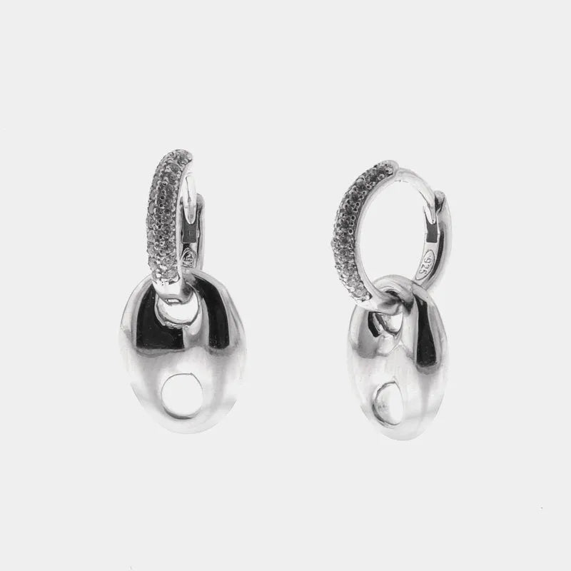 Orecchini in Argento 925 Maglia marina rodiata impreziosita da zirconi bianchi