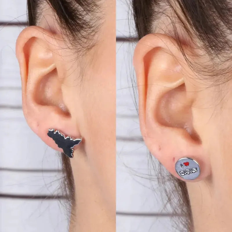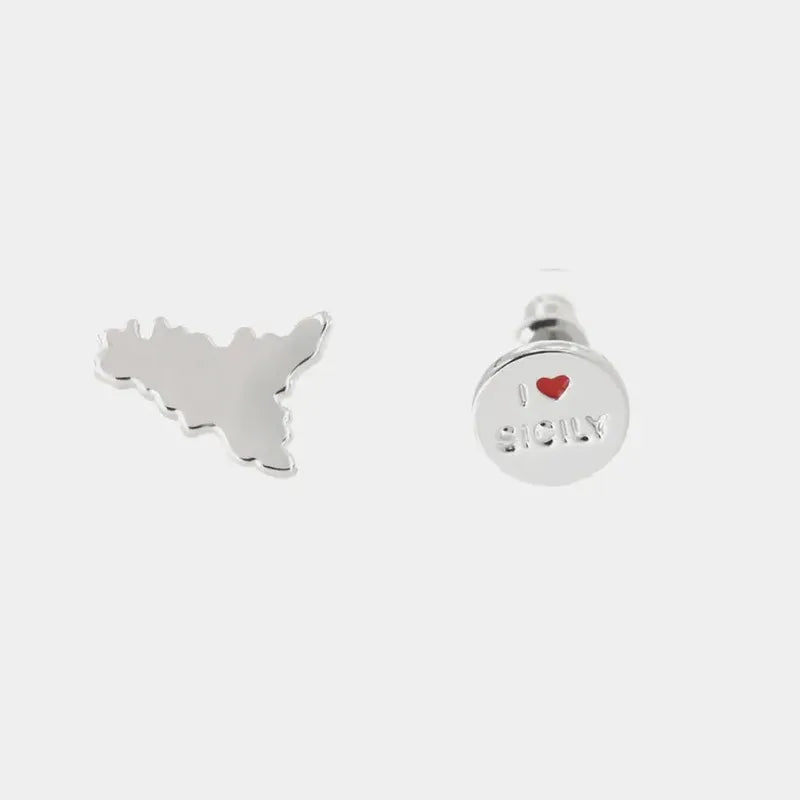 Orecchini in Metallo a lobo, Sicilia e bottone Sicilia nel cuore, impreziosito da cuore in smalto rosso
