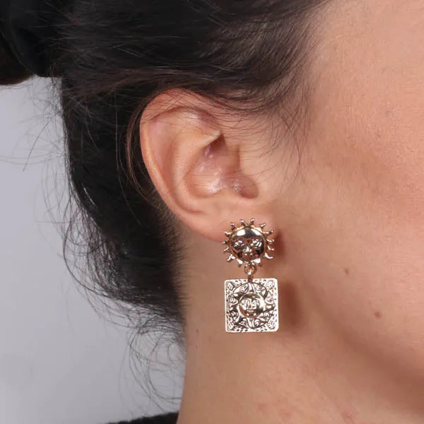 Orecchini in Metallo sole con mattonella pendente in perfetto stile siciliano