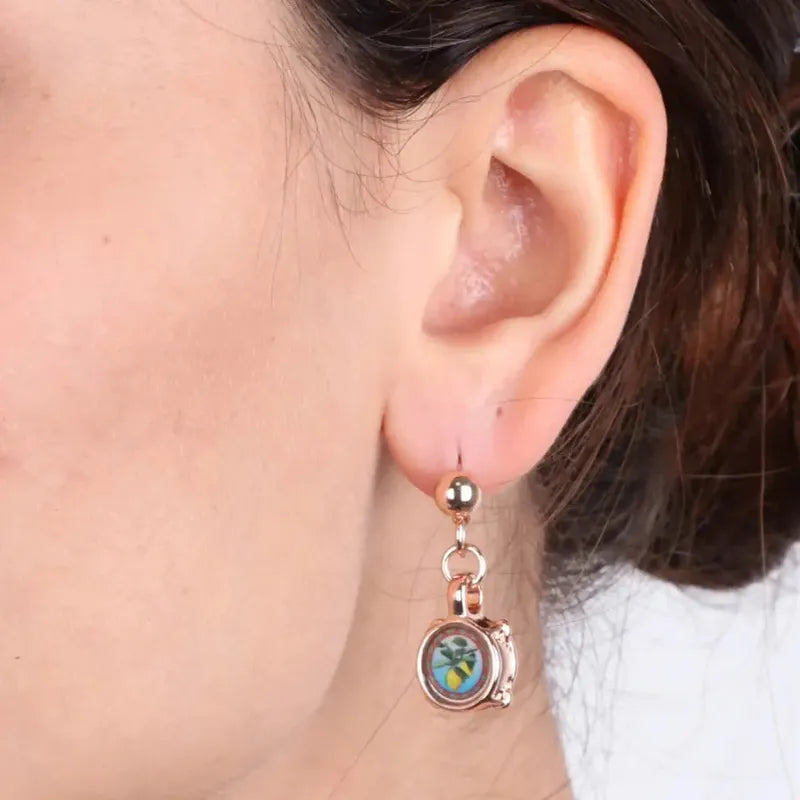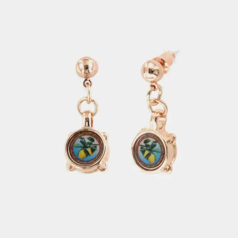 Orecchini in Metallo tamburelli pendenti con disegno limoni di Sicilia impreziosito da smalti colorati