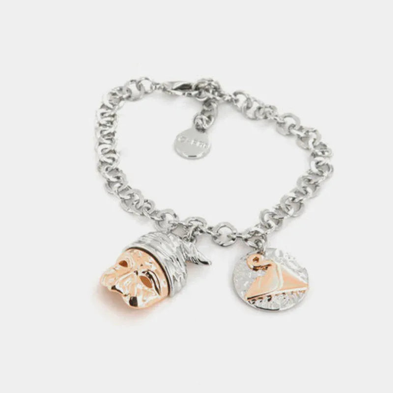 Bracciale in Metallo con maschera pulcinella pendente e medaglia con vesuvio