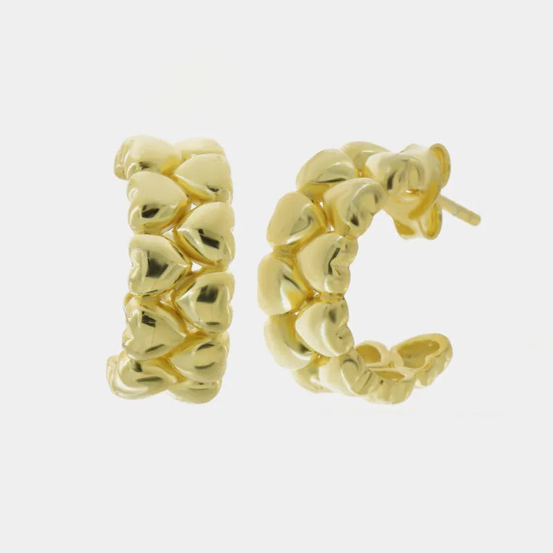 Orecchini in Argento 925 semi cerchio con cuori lucidi